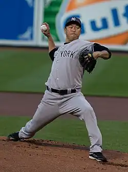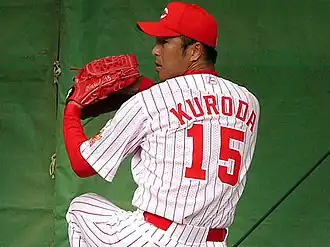 Hiroki Kuroda (黒田 博樹, Kuroda Hiroki; born February 10, 1975) is a Japanese former professional baseball pitcher. He pitched in Nippon Professional Baseball (NPB) for Hiroshima Toyo Carp from 1997 to 2007 before playing in Major League Baseball (MLB) for the Los Angeles Dodgers from 2008 to 2011 and New York Yankees from 2012 to 2014. After the 2014 season, he chose to return to the Carp to finish out his career.