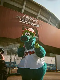 - One of the team's two mascot's, "Carp Boy"(カープ坊や Kāpu Bōya), is seen in the team's logo. Their other mascot, "Slyly"(スラィリー Surairī), bears a resemblance to the Phillie Phanatic of the Philadelphia Phillies and has been with the team since 1995. Both Slyly and the Phillie Phanatic were designed by Harrison/Erickson which has also worked with Sesame Street and Jim Henson. The Slyly costume design was also previously used as Duncan the Dragon for the New Jersey Nets.[14]