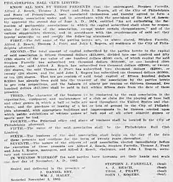 Article of co-partnership of the Philadelphia Ball Club Limited (November 1, 1882) establishing the Philadelphia Phillies