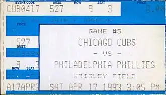 A ticket for a 1993 game between the Phillies and the Chicago Cubs