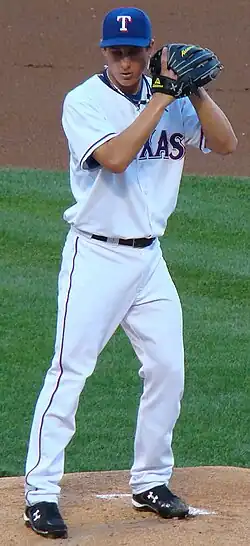 Gary Matthews, Jr., Mark DeRosa, Carlos Lee, and Adam Eaton all signed with other clubs as free agents. Vicente Padilla accepted a three-year, $33 million offer with an option for a fourth year at $12 million.[10] The Rangers also signed first baseman/outfielder Frank Catalanotto to a multi-year deal. The Rangers later added reliever Éric Gagné and veteran outfielders Kenny Lofton and Sammy Sosa on short-term deals. In a sign that general manager Jon Daniels was looking for results in 2007, the Rangers' top pitching prospect John Danks was traded to the Chicago White Sox along with reliever Nick Masset for 23-year-old starter Brandon McCarthy.[11] The Danks trade caused quite a stir amongst fans, many of which had followed the minor league careers of the highly touted "DVD" trio of pitchers that included Danks, Edinson Vólquez, and Thomas Diamond. All three pitchers would eventually reach the majors, with varying degrees of success, while McCarthy's career became marred by injury.