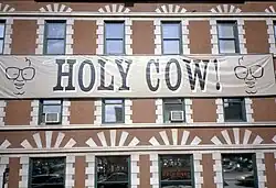 "Holy cow!" (and other similar terms), an exclamation of surprise used mostly in the United States, Canada, Australia, and England, is a minced oath or euphemism. The expression dates to at latest 1905.[1] Its earliest known appearance was in a tongue-in-cheek letter to the editor of the Minneapolis Journal: "A lover of the cow writes to this column to protest against a certain variety of Hindu oath having to do with the vain use of the name of the milk producer. There is the profane exclamations, 'holy cow!' and, 'By the stomach of the eternal cow!'"[2] The phrase appears to have been adopted as a means to avoid using obscene or indecent language and may have been based on a general awareness of the holiness of cows in some religious traditions, particularly Hinduism.[1] Hence, it is seen as offensive to some whose cultural and religious traditions are upheld.