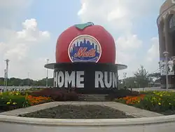 The Home Run Apple is a motorized apple prop in the batter's eye at Citi Field in New York City, New York, United States; which rises whenever the New York Mets hit a home run there.[1] The original, smaller apple was first installed in Shea Stadium in 1980 at the behest of Al Harazin with a replacement being installed at Citi Field upon that stadium's opening in 2009, the original apple being moved to the home plate entrance of Citi Field where it currently remains.[2] The original is 9 feet (2.7 m) tall while the replacement is 18 feet (5.5 m) tall and 16 feet (4.9 m) wide.[3]
