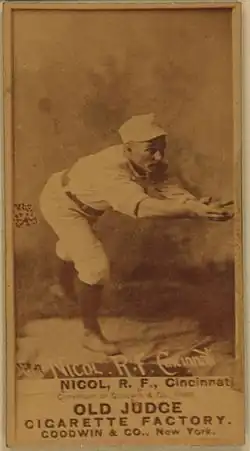 Hugh N. Nicol (January 1, 1858 – June 27, 1921) was a Scottish born professional baseball player. An outfielder, Nicol played in Major League Baseball for the Chicago White Stockings, St. Louis Browns, Cincinnati Red Stockings, and Cincinnati Reds. Nicol's debut game took place on May 3, 1881. His final game took place on August 2, 1890.