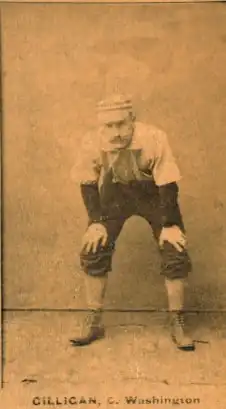 From 1888 to 1892, the Hyannis town team was sponsored by "gentlemen of leisure"[7] Charles B. Cory and Charles Richard Crane, who funded and played on the club. At Cory and Crane's expense, various well-known professional and amateur players were brought in to play alongside the Hyannis locals. In 1888, Cory and Crane outfitted the club in "suits which were of the best white flannel and red stockings," and secured the services of pitcher Dick Conway and catcher Mert Hackett, both formerly of the major league Boston Beaneaters.[8][9][10] In 1889, Hackett was back, along with Barney Gilligan, who had played for the 1884 major league champion Providence Grays, where he was a teammate of Cape Cod native Ed Conley and batterymate of Baseball Hall of Fame hurler Charles "Old Hoss" Radbourn.[11][7][12][13] Hackett was back again as team captain in 1891, and in the first game of the season, Hyannis hosted a team from Boston that featured Baseball Hall of Famer George Wright at shortstop.[14][15][16][17] After the season, Cory published an extended ode to the Hyannis ballclub in the style of Ernest Thayer's Casey at the Bat.[18][19][20]