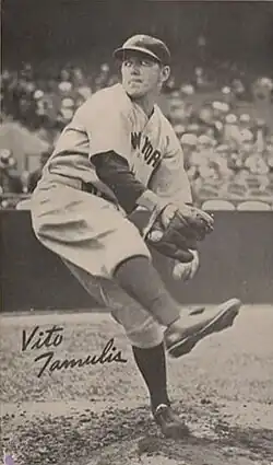Herman's clubs also featured several future major leaguers. Boston College pitcher Ed Gallagher twirled for Barnstable in 1931,[79][37][80] then played for the Boston Red Sox in 1932, and returned to play for Barnstable again in 1933.[49][81][82] Another 1933 Barnstable hurler, Emil "Bud" Roy, went on to play briefly for the Philadelphia Athletics.[83][84][72] Quincy, Massachusetts native Ted Olson was a dominant pitcher for Barnstable in 1934 and 1935, and went on to play for the Boston Red Sox.[85][86] CCBL Hall of Famer Lennie Merullo also played for Barnstable in 1935,[71] and went on to play seven seasons with the Chicago Cubs.