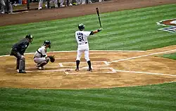 Suzuki had 213 hits in 2008, his eighth straight 200-hit season. This tied the 107-year-old record set by Wee Willie Keeler.[55] Typically, Suzuki was among baseball's leaders in reaching base on an error (14 times in 2008, more than any other batter in the AL), and in infield hits (his 56 were the most in the majors).[56] Suzuki amassed an estimated 694 infield hits in his U.S. career.[57] Detroit third baseman Brandon Inge told The New York Times, "I wish you could put a camera at third base to see how he hits the ball and see the way it deceives you. You can call some guys' infield hits cheap, but not his. He has amazing technique."[58] In May 2008, Suzuki stole two bases, giving him a career total of 292, surpassing the previous Seattle Mariners team record of 290 set by second baseman Julio Cruz. Cruz, who worked on Spanish-language broadcasts of Mariners games at the time, was watching from the broadcast booth as Suzuki broke his record.[59][60]