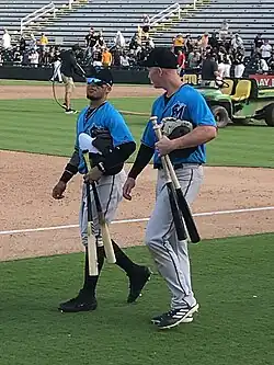 Díaz with Garrett Cooper during spring training in 2019