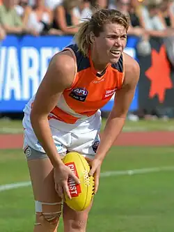 Barclay began playing Australian football at the age of twelve, although she gave it up for a period in order to concentrate on baseball.[11] At amateur level, she played for periods with Swan Districts in the West Australian Women's Football League (WAWFL) and the UNSW Eastern Suburbs Stingrays in the Sydney Women's AFL competition.[12] Barclay represented both Western Australia and NSW/ACT at the AFL Women's National Championship.[13][14] She was drafted to Greater Western Sydney with the 65th pick overall in the 2016 AFL Women's draft,[15] and made her senior debut for the club in round one of the 2017 season, against Adelaide at Thebarton Oval.[3]