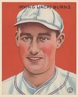 John Irving Burns (August 31, 1907 – April 18, 1975), nicknamed "Slug", was an American first baseman, coach and scout in Major League Baseball who played for the St. Louis Browns and Detroit Tigers from 1930 to 1936. A native of Cambridge, Massachusetts, Burns stood 6 feet (1.8 m) tall and weighed 175 pounds (79 kg) in his playing days and batted and threw left-handed.