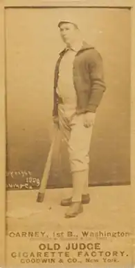 John Joseph Carney (November 10, 1866 – October 19, 1925), also known as "Handsome Jack", was an American professional baseball player in the late 19th century. He was born in Salem, Massachusetts, United States in 1866, and made his debut with the Washington Nationals on April 24, 1889. His last game, with the Milwaukee Brewers, was on October 4, 1891, and he died in 1925 in Litchfield, New Hampshire. In his three-year career, he also played with the Buffalo Bisons, the Cincinnati Kelly's Killers, and the Cleveland Infants, and his positions were first base and outfield. Carney's best performance was with the Infants in 1890, with whom he had a batting average of .348.