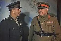 On 3 May 1943, while on an aerial inspection tour, Lieutenant General Frank M. Andrews,[84] European Theater of Operations, United States Army (ETOUSA) commander since replacing Eisenhower on 5 February 1943,[85] was killed in an air crash in Iceland.[84] Marshall appointed Devers to replace Andrews.[86] Devers arrived in England on 9 May 1943.[87] His principal tasks were overseeing preparation of detailed plans and the buildup of men and materiel for Operation Overlord and supporting the Combined Bomber Offensive.[88] At the end of May 1943, there were 133,000 US troops in the United Kingdom, of which 19,000 were in the ground forces, 74,000 in the air forces, and 34,000 in the services of supply. By the end of the year, their numbers had grown to 774,000, of which 265,000 were in the ground forces, 286,000 in the air forces, and 220,000 in the services of supply.[89] In preparing the plans for Overlord, he worked closely with the Chief of Staff to the Supreme Allied Commander (COSSAC), British Lieutenant General Frederick E. Morgan[84] with whom he had a good working relationship.[88] Devers' main objection to the COSSAC plan was that he did not want American units smaller than corps directly subordinated to British command,[90] based on what he called "the Pershing Principl".[91]
