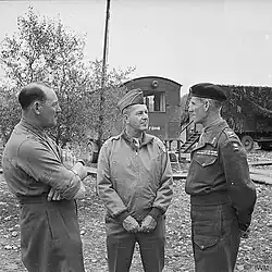 Devers sent a cable to Marshall on 1 July proposing for an army group to be formed, with himself as commander.[126] Eisenhower concurred with this on 12 July.[125] It would have been easy enough to add the Seventh Army to Bradley's 12th Army Group, but that would have meant that Eisenhower would have to deal with the French, and after his experience in Operation Torch, Eisenhower preferred to let Devers do so.[127] Marshall made the appointment on 16 July. Thus, Devers wore four "hats" for the operation: Deputy Supreme Allied Commander, Mediterranean Theater; Commanding General NATOUSA; Commander, Advanced Detachment AFHQ, which was activated on 29 July; and Commanding General, 6th Army Group, which Devers activated on 1 August.[125]