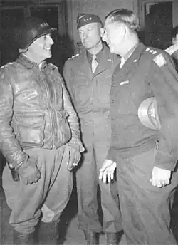 Devers now turned his attention to the Colmar Pocket.[161] He had expected the Germans to withdraw and thought that the French First Army could reduce the pocket.[149] He later admitted that he had underestimated the German determination to hold it and had overestimated de Lattre's ability to keep moving against renewed and strengthened German resistance.[153][162] Eisenhower regarded the pocket as a "sore" and sent five additional American divisions to 6th Army Group. After the Ardennes Offensive and Operation Northwind, Devers regarded it as petty of Bradley to begrudge him the additional divisions.[163] French and American troops finally eliminated the Colmar Pocket on 5 February 1945.[164] Against Eisenhower's preference, Devers was promoted to general on 8 March 1945, ahead of Spaatz, Bradley, and Patton,[165] remaining the second-highest ranking American officer in Europe, after Eisenhower.[166]