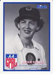 Jacquelyn Kelley [née Savage] (November 11, 1926 – May 12, 1988) was an American utility infielder/outfielder and pitcher who played from 1947 through 1953 in the All-American Girls Professional Baseball League (AAGPBL). Listed at 5 ft 7 in (1.70 m), 140 lb., she batted and threw right-handed.[1][2]
