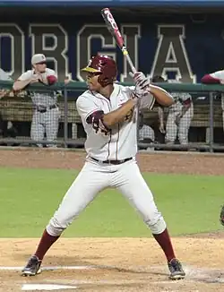 Winston chose Florida State in part because he was allowed to play for the Florida State Seminoles baseball team in addition to football. A switch-hitting batter and a right-handed thrower, he played as an outfielder and a pitcher as a freshman in 2013. He batted .235 with a .723 on-base plus slugging in 119 at-bats and had a 3.00 earned run average in 27 innings pitched.[8] Prior to the 2014 season, Winston was named a preseason All-American by Baseball America as a 3rd-team utility player.[44]