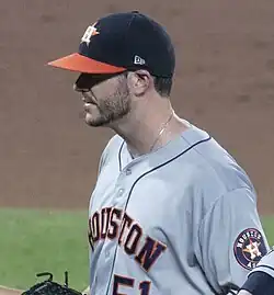 On March 31, 2017, he was optioned to the Fresno Grizzlies of the Triple–A Pacific Coast League.[11] On April 20, the Astros promoted Hoyt to the major leagues.[12] Hoyt made 32 appearances out of the bullpen for the Astros in 2017, finishing with a 1–0 record and a 4.38 ERA. The Astros finished the season with a 101–61 record for an AL West pennant, and eventually won the 2017 World Series. Hoyt did not participate in the playoff run, but was still on the team's 40-man roster at the time, declaring him eligible for his first career World Series title.[13]