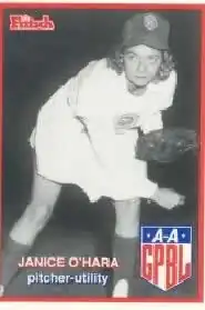 Janice O'Hara was one of the sixty original players to join the All-American Girls Professional Baseball League for its inaugural season. A valuable and versatile player, she had an array of pitches that kept the hitters guessing, and also played several positions competently during her seven years in the league.[2]