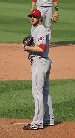 The Cincinnati Reds selected Burton in the major league portion of the 2006 Rule 5 draft[5] meaning he has to stay on the Reds 25–man active roster all year unless injured or he returns to his previous team. He made his major league debut on April 4, 2007, and pitched in one third of an inning while walking three.[6] On April 8, 2007, Burton was placed on the disabled list after straining a hamstring running in the outfield.[6] Burton was sent to both Triple-A Louisville[7] and Double-A Chattanooga on a rehab assignment[8] and had a combined 1–1 record with a 6.23 ERA.[4] He was taken off the disabled list on May 9, when Eric Milton had an inflamed elbow.[9] Overall, for the season Burton went 4–2 with a 2.51 ERA while making 47 appearances.[3] After putting together a 4–1 record with a 2.23 ERA in 43 games, he strained a muscle in his chest causing him to go on the disabled list on July 19, 2008.[10] Two days earlier it was reported that Burton did not have to go on the disabled list, but he was bothered by it in a bullpen session the day before he was due back.[11][12] On August 4, he suffered another setback while throwing in a bullpen session, when he felt tenderness in the muscle.[13] Finally, on August 15, Burton threw a pain free bullpen session[14] and followed that up with another painfree simulated game on August 22.[15] On August 28, Burton was sent to Louisville for a rehab assignment.[16][17] The Reds activated Burton from the disabled list on September 2, 2009[18] after he had a 4.50 ERA in two games for Louisville.[4] Despite missing almost a month and a half due to injury, Burton pitched in a career high 54 games and posted a 5–1 record with a 3.22 ERA.[3]