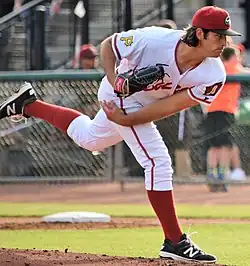 In 2010, as a senior he hit .404/.523/.764, with 5 home runs and 23 RBIs. On the mound he had an 8–0 record, a 1.88 ERA, and 91 strikeouts in 63.1 innings pitched, and pitched the first no-hitter in school history.[12][13][14][8] At the time he threw both a 4-seam and 2-seam fastball that touched 90–91 mph, a curveball with a late break (77–79 mph), and a change-up (81–83 mph).[9]