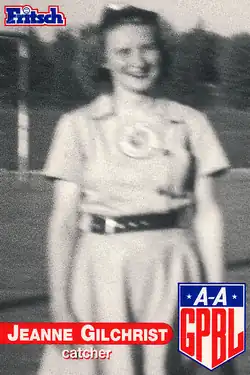 Jeanne Gilchrist (June 13, 1926 – August 4, 2004) was a Canadian catcher who played in the All-American Girls Professional Baseball League. Listed at 5 ft 5 in (1.65 m), 125 lb (57 kg), Gilchrist batted and threw right handed. She was born in New Westminster, British Columbia.[1][2]