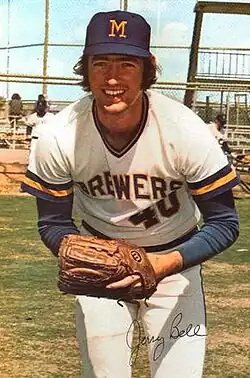 Jerry Houston Bell (born October 6, 1947) is a former Major League Baseball pitcher. Bell played for the Milwaukee Brewers for four seasons. He batted right and left and threw right-handed. In 1972 he led the pitching staff in ERA with 1.66.