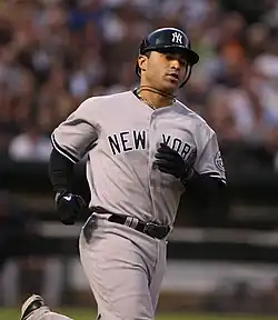 On July 31, 2009, he was traded to the New York Yankees for minor league catcher Chase Weems.[48] The move was made to help shore up the team's bench, with Brett Gardner on the disabled list, and to spell Johnny Damon, Derek Jeter, and Alex Rodriguez when needed.[49] On August 1, Hairston got his first hit and RBI as a Yankee.[50] In his time with the Yankees, he hit .237 with two home runs and 12 RBIs in 45 games