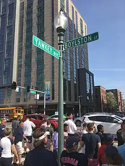 - ^ a b "So long Yawkey Way! Boston officially changes name of street outside Fenway Park". WCVB-TV. May 3, 2018. Retrieved May 3, 2018.