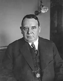 Dunn was born in Marshalltown, Iowa and became wealthy through his partnership in a railroad construction firm. In 1916 he was recruited by American League president Ban Johnson and his secretary, Bob McRoy, to head up a syndicate to buy the Cleveland Indians baseball team from Charles Somers for $500,000.[1] During his tenure the team's ballpark League Park was renamed "Dunn Field" and in 1920 the Indians won their first World Series. At his death at Chicago in 1922 at age 57,[2] control of the team passed to his surviving spouse, Edith Dunn, and his estate, thus making Mrs. Dunn one of the first women to own a major league baseball team.[3] In 1927 ownership of the Indians changed hands when Dunn's widow Edith, by then known as Mrs. George Pross, sold the franchise for $1 million to a group headed by Alva Bradley.[4]