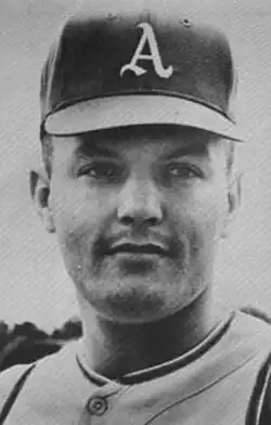 James Edwin Nash (born February 9, 1945),[1] commonly known as Jim Nash, is an American former professional baseball pitcher. He debuted on July 3, 1966 against the Detroit Tigers after then Kansas City Athletics signed him as a free agent. During his rookie season in 1966 he went 12–1 with a 2.06 earned run average in 127 innings pitched as part of the kiddie corps of pitchers featured in Kansas City. He also received the only two votes not won by Tommie Agee for the American League Rookie of the Year Award. Nash would appear on the cover of the March 13, 1967 Sports Illustrated, and was featured in a story along with up and coming pitchers Catfish Hunter and Blue Moon Odom.[2] Nash however failed to live up to the hype from his first two seasons, battling shoulder soreness, and ended with a career record of 68 wins and 64 losses with a lifetime ERA of 3.58, allowing 1,050 hits and 441 earned runs in 1,107.1 innings pitched.[1][3] He went on to play 4 seasons for the Athletics and 3 seasons for the Atlanta Braves, playing his final season with the Philadelphia Phillies in 1972.