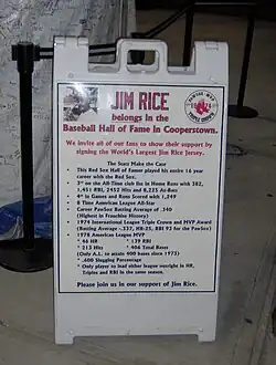 During the 2007 season, the Pawtucket Red Sox started a campaign to get Rice inducted which included having fans sign "the World's Largest Jim Rice Jersey.”[29]