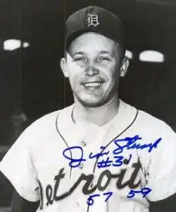 Stump graduated from Saint Mary's High School in his native Lansing, Michigan, and signed with the Tigers in 1951. His first two minor league seasons — sandwiched around a two-year military stint during the Korean War — were noteworthy, as he won 30 of 43 decisions (.698). After winning 14 games for the 1957 Birmingham Barons of the Double-A Southern Association, Stump made his Major League debut for the Tigers against the Boston Red Sox at Briggs Stadium, working one inning in relief and giving up a hit, a run and two bases on balls, including one to Ted Williams, in a 6–1 Tiger defeat.[1] But, overall, Stump's first trial with Detroit was successful; he appeared in five more games played, won his only decision, and surrendered a total of only three earned runs in 131⁄3 innings, for a sparkling 2.08 earned run average.