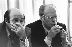 Garagiola and President Ford watching the returns for the 1976 presidential election, for which they had done a series of television ads together