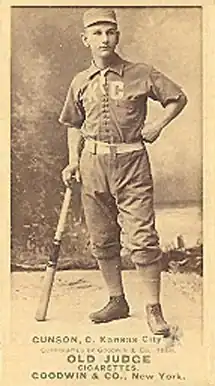 Born in Philadelphia, Gunson played for the Cleveland Spiders, Washington Nationals, Kansas City Cowboys, Baltimore Orioles, and St. Louis Browns from 1884 to 1893. He is sometimes credited with creating the first catcher's mitt when he was trying to play through an 1888 finger injury. Though Gunson was young and did not need the money, Jim Manning was going to help him patent it once Manning returned from a summer baseball tour. Gunson said that he told some other players about the glove and that many other players began using such a mitt before Manning came home.[1]