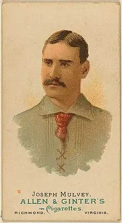 Joseph Henry Mulvey (October 27, 1858 – August 21, 1928) was an American professional baseball third baseman. He played in Major League Baseball (MLB) from 1883 to 1895 for the Providence Grays, Philadelphia Quakers/Phillies, Philadelphia Athletics, Washington Senators, and Brooklyn Grooms. Mulvey survived a gunshot wound to the shoulder with Providence in his first major league season, and he became best known as a third baseman for the three Philadelphia teams between 1883 and 1892.