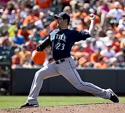 - ^ Withers, Bud (May 12, 2013). "Safeco Joe eager to break pattern on road". The Seattle Times. Archived from the original on July 15, 2014. Retrieved July 9, 2014.