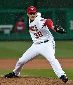 Joel Ryan Hanrahan (born October 6, 1981)[1] is an American former professional baseball relief pitcher. Hanrahan was originally a starting pitcher for the Washington Nationals of Major League Baseball (MLB) before moving to the closer role for the Nationals, Pittsburgh Pirates, and Boston Red Sox.