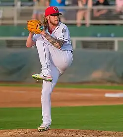 ![]() Estes pitching for the Lansing Lugnuts in 2022 | |