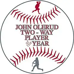 The John Olerud Two-Way Player of the Year Award (known colloquially as the John Olerud Award) is a college baseball award given to the best two-way player of the season. The award is named after former Washington State Cougars All-American pitcher and first baseman John Olerud.
