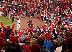 Rodriguez salutes the fans at Busch Stadium after winning the 2006 World Series.