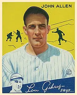 John Thomas Allen (September 30, 1904 – March 29, 1959)[1] was an American pitcher in Major League Baseball (MLB), who played for the New York Yankees, Cleveland Indians, St. Louis Browns, Brooklyn Dodgers, and New York Giants.[2]