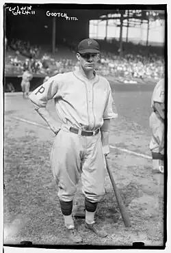 Gooch made his major league debut with the Pittsburgh Pirates on September 9, 1921 at the age of 22.[1] Gooch had his best season offensively in 1922 when veteran catcher Walter Schmidt, held out for more pay and didn't play until August.[3] He posted a career-high .329 batting average in 105 games, and collected an extra-inning six-hit game, two four-hit games, and eight three-hit games.[1] He also had 102 assists defensively, third best in the league.[5] In 1925, he played as a backup catcher to Earl Smith while posting a .298 batting average along with 30 runs batted in to help the Pirates win the National League pennant.[1] The Pirates then went on to defeat the Washington Senators in the 1925 World Series.[6] He appeared in three games of series and went hitless in 3 at bats.[7]