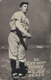 After toiling in the minors, this lanky 6 ft 1 in (1.85 m) 178-pounder spent six seasons in the major leagues as a pitcher. Miljus reached the majors in 1915 with the Pittsburgh Rebels of the outlaw Federal League, spending one year with them before moving to the Brooklyn Robins (NL, 1920–21), Pittsburgh Pirates (NL, 1927–28) and Cleveland Indians (AL, 1928–29).[4] More than a dependable pitcher, he filled several roles coming out from the bullpen as a closer or a middle reliever, and as an occasional starter as well.