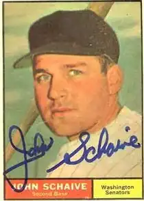 John Edward Schaive (February 25, 1934 – May 11, 2009) was a backup second and third baseman who played in Major League Baseball between the 1958 and 1963 seasons. Listed at 5 feet 8 inches (1.73 m) tall and 175 pounds (79 kg), Schaive batted and threw right-handed. He was born in Springfield, Illinois.