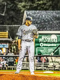 ![]() Jonathan de Marte on the mound during a Quebec Capitales game, August 2019 | |