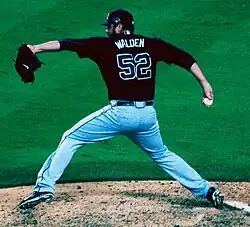 Walden had an unusual pitching motion. He hopped in the middle of his windup, and actually had both feet in the air for a split second, before returning to the ground and throwing the ball.[39]