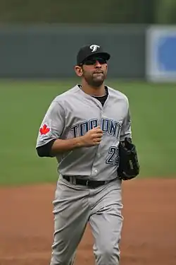 José Antonio Bautista Santos (born October 19, 1980), nicknamed "Joey Bats",[1] is a Dominican former professional baseball right fielder and third baseman who played 15 seasons in Major League Baseball (MLB), primarily for the Toronto Blue Jays. Bautista also played for the Baltimore Orioles, Tampa Bay Devil Rays, Kansas City Royals, Pittsburgh Pirates, Atlanta Braves, New York Mets, and Philadelphia Phillies.