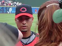 He played with the Reds from 2000 to 2004, mostly as a utility player. In 2003, he batted .253/.290/.388 with career highs of nine home runs and 33 RBI in 113 games.[4]