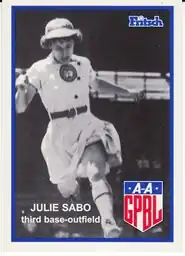 Julie Dusanko [Sabo] (February 22, 1922 – August 22, 2003) was a Canadian infielder who played in the All-American Girls Professional Baseball League (AAGPBL). Listed at 5' 5", 122 lb., Dusanko batted and threw right-handed. She was born as Julianna Rita Sabo in Regina, Saskatchewan.[1][2] Dusanko was one of 68 girls from Canada who played in the All-American Girls Professional Baseball League during its 12-year history.