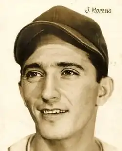 In his Major League debut on September 8, he started against the Philadelphia Athletics and pitched a complete game, 10–4 victory at Griffith Stadium.[3] Moreno spent the full 1951 and 1952 seasons with Washington, as both a starter and relief pitcher, and was credited with 12 complete games and two saves during that period. He made his last MLB start on May 25, 1953 — also against Philadelphia — and threw another complete game victory over the Athletics, 6–1. Although Moreno had compiled a 3–1 record that season and his best MLB earned run average (2.80), he was sent to the minor leagues in mid-season and spent the rest of his career in minor and winter league baseball.[1] At age 45, he worked in 38 games for the 1966 Puebla Pericos in the Double-A Mexican League.[2] Two years later, as batting practice pitcher for the world champion Detroit Tigers, he was voted a full World Series share by his teammates.[1]